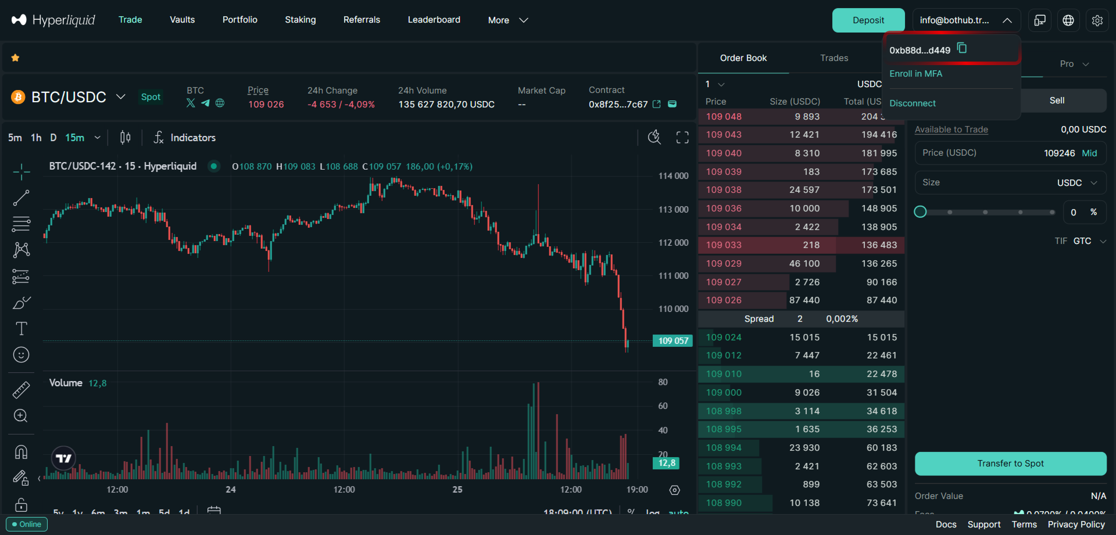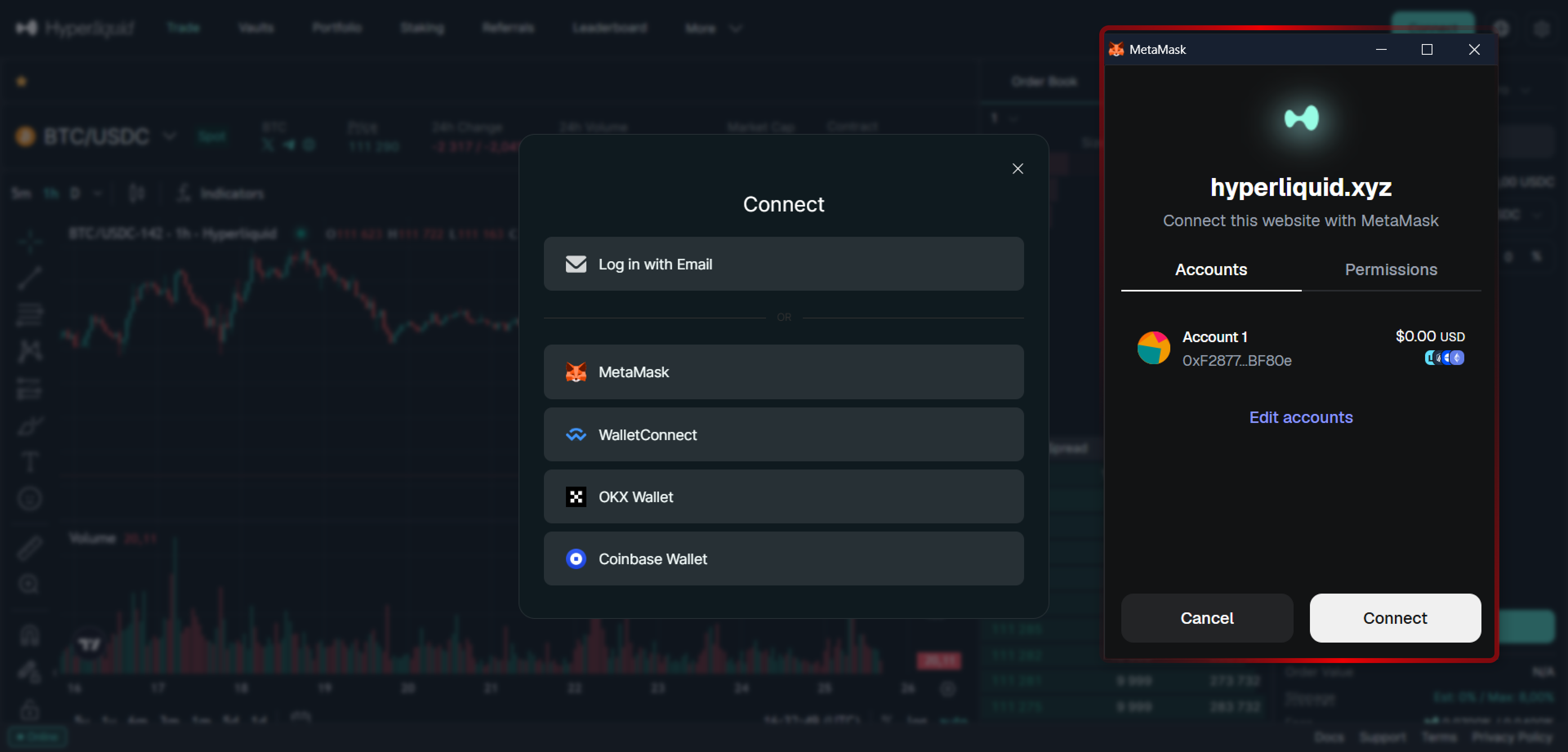När du är klar är du officiellt inloggad på HyperLiquid med din plånbok.