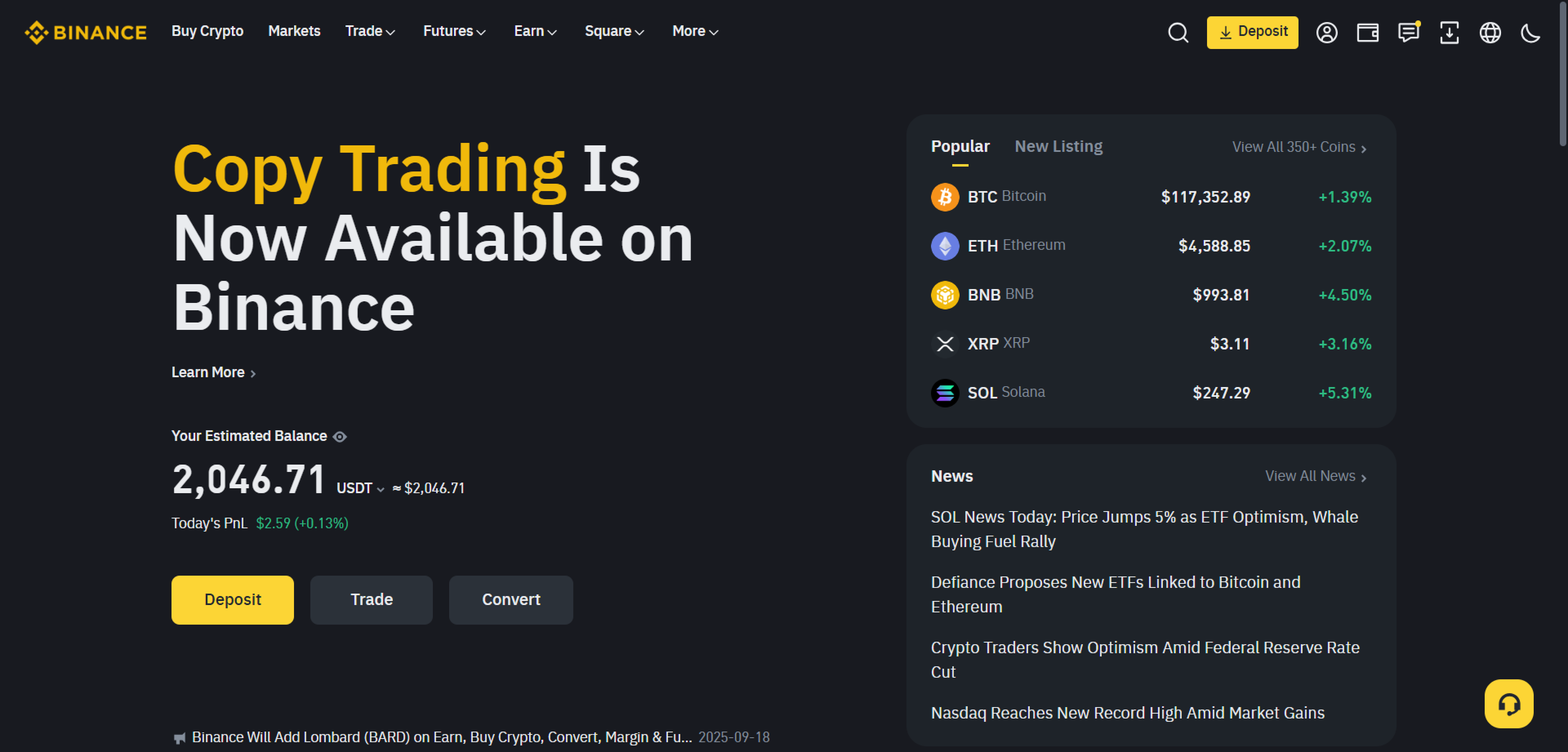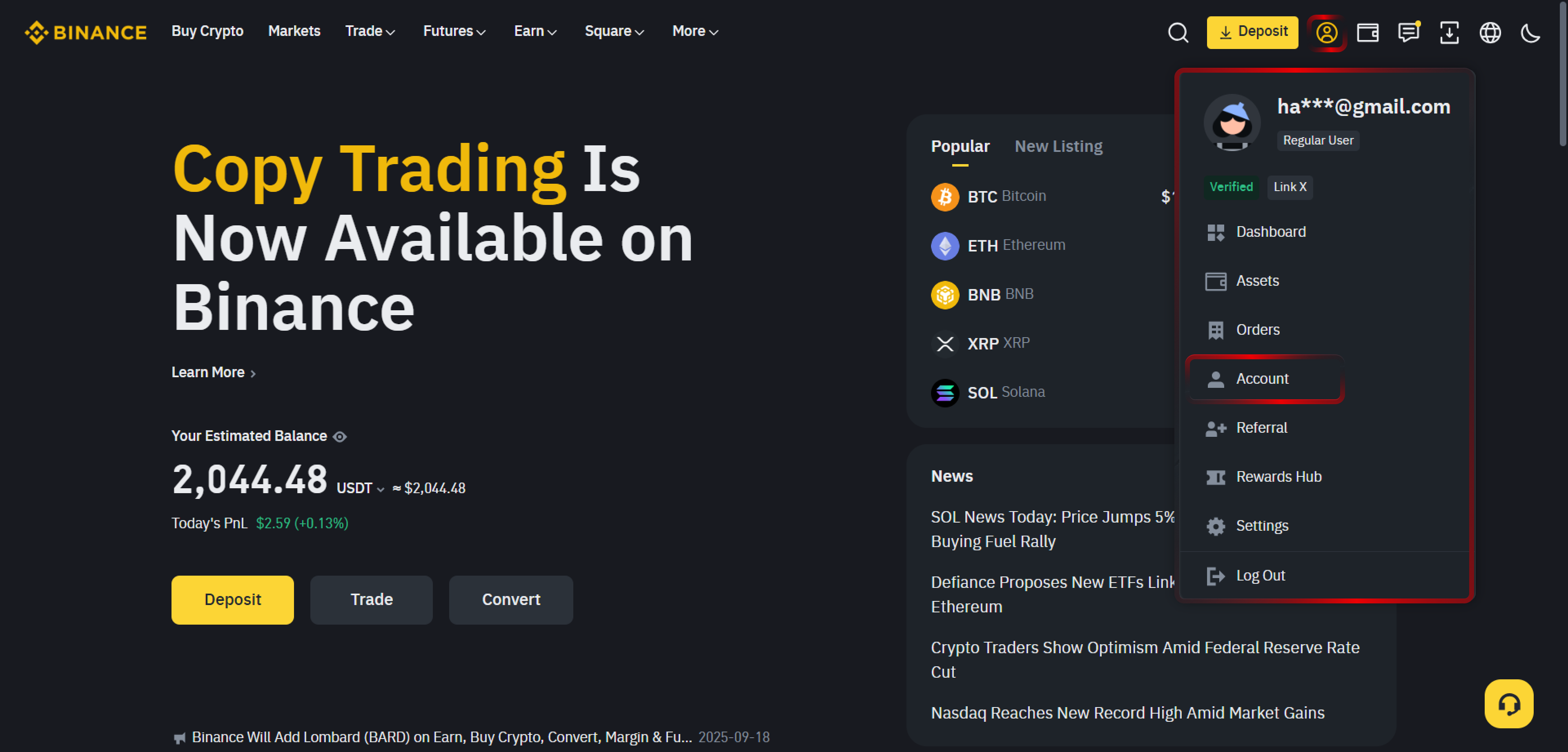 - Ditt Binance-konto kommer att visas i din Exchange List.
